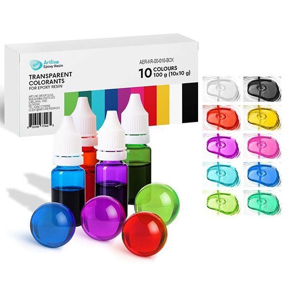 Gør dine epoxyprojekter unikke med Artline flydende farver. Dette sæt med 10 levende farver er specialudviklet til at give dine kreationer et smukt, transparent look med høj farvemætning uden at klumpe eller gøre resinen uklar.